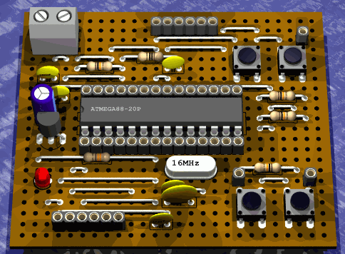 Die ATM0815-mini-Platine für ATmega88
