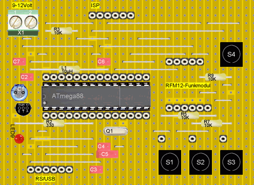 Euro ohne Funkmodul) aufgebaut - dank Sockel für RFM12
